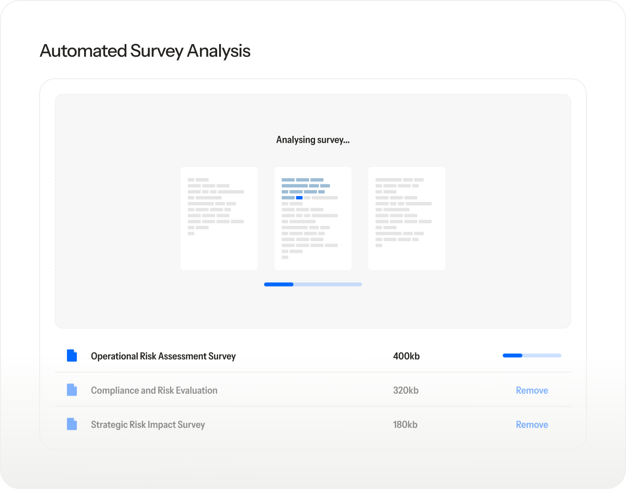 Transform unstructured PDF surveys into structured data automatically. Alice processes complex risk survey reports using advanced AI, eliminating manual data entry and reducing the time spent on document review by up to 90%.